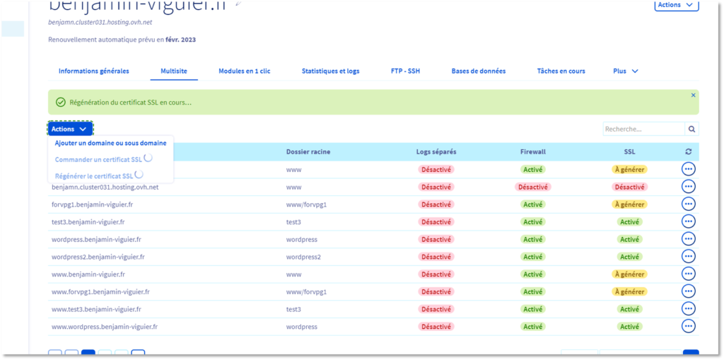 2.Régénérer le certificat SSL
