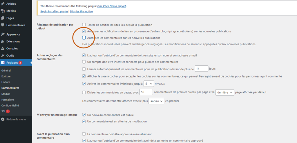 7.Désactiver les commentaires sur les articles:
