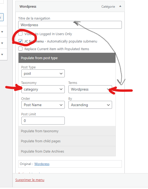 Pour une page ou un article seul, pas besoin de passer par JCMenu.