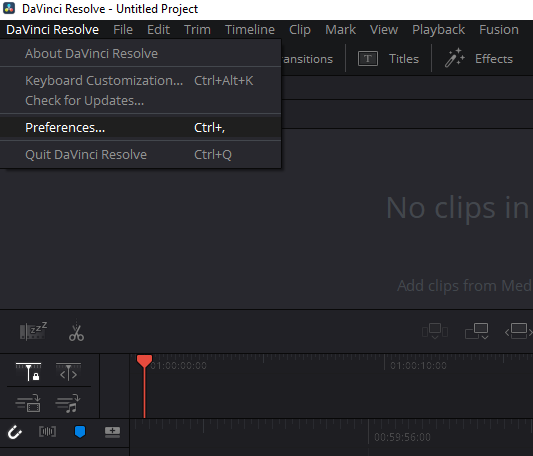 DaVinci Resolve-> préférences