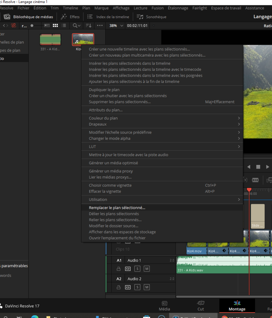 Dans la timeline, clic droit sur le plan à changer -> Rechercher dans la bibliothèque des médias.
