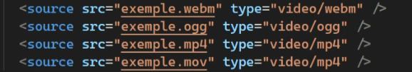 source: les liens vers les différentes vidéos. Permet de proposer différentes versions de la même vidéo (au cas où les navigateurs n’intègrent pas tous les formats)