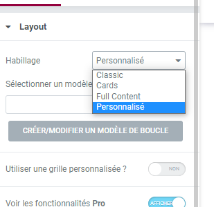 Dans Elementor on va chercher cette boucle avec le widget Posts