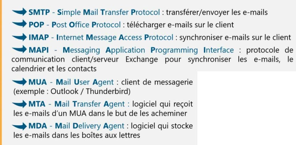 SMTP – POP – IMAP – MAPI – MUA – MTA – MDA