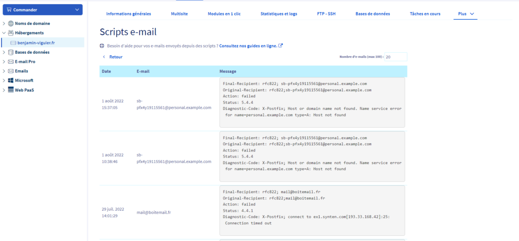 (Attention : Le mail peut partir, mais être bloqué par le prestataire mail d’arrivée, gmail, outlook, free, orange, yahoo… D’où l’interêt de se créer des adresses ‘tests’ chez tous ces prestataires)