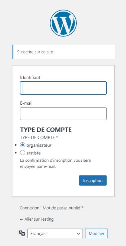 à l’inscription on choisi orga ou artiste