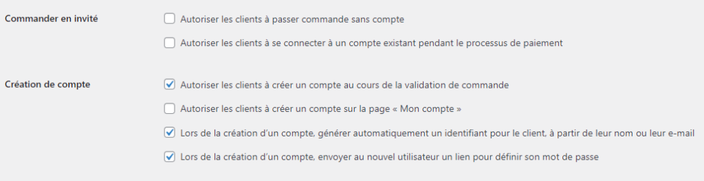 Cela ne fonctionne que si WOOCOMMERCE CRÉE UN COMPTE LORS DE L’ACHAT.