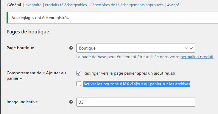 Le code fonctionne si on décoche l’option liée aux boutons AJAX d’ajout au panier.